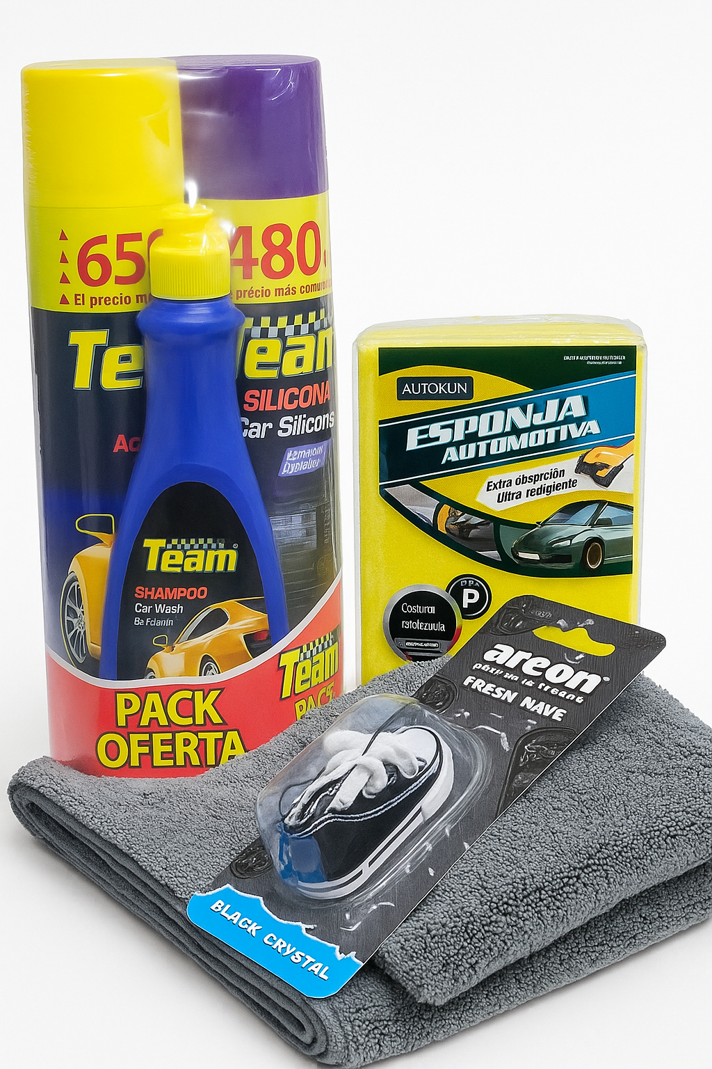 Kit lavado completo auto CategoríasKits de limpieza Paños Herramientas de limpieza Aromatizantes Promociones General Kit lavado completo auto$1.200 El kit ideal para tener el auto siempre limpio y con rico olor 👌🏼 Incluye: 🫧Kit team de: 🟩Shampoo 🟩cera en aerosol 🟩silicona en aerosol 🫧Esponja de lavado 🫧Aromatizante para auto con forma de champion 🫧Microfibra premium de secado 60*40 Kit lavado completo auto cantidad Comprar ahora Categorías: General, Kits de limpieza Productos relacionados ¡Oferta! Pack Team lavado $784 El precio original era: $784.$707El precio actual es: $707. Añadir al carrito Paño Mágico microfibra premium $180 Añadir al carrito Kit exprés brilla $1.983 Añadir al carrito Paño para secado (60×40) $130 Añadir al carrito